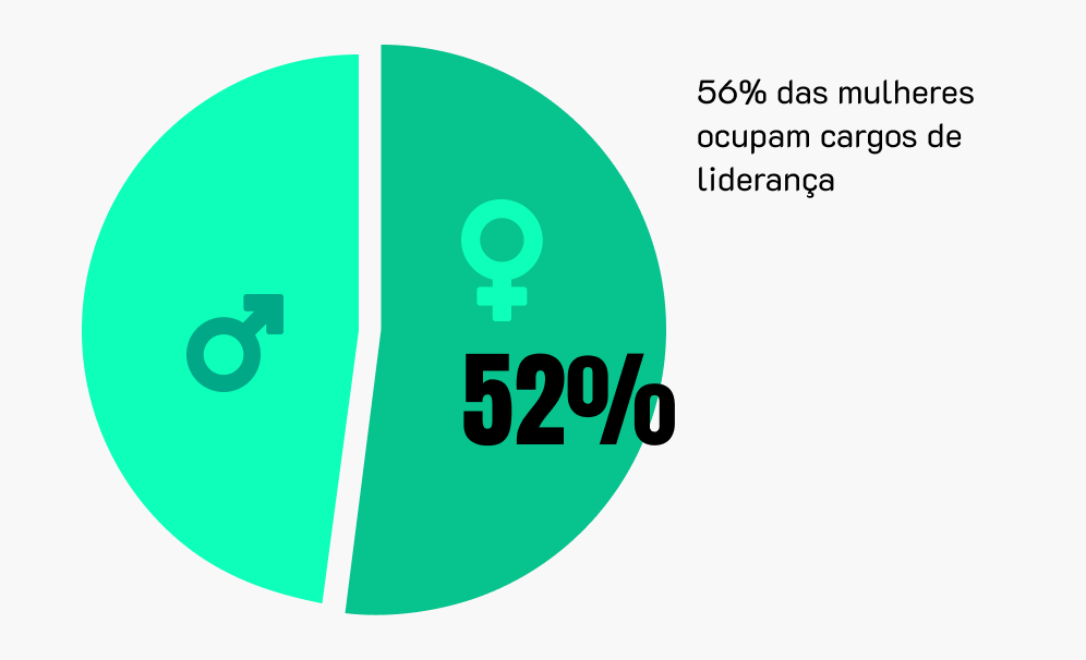 Aqui, mulheres são maioria, provando que inovação e diversidade caminham juntas.